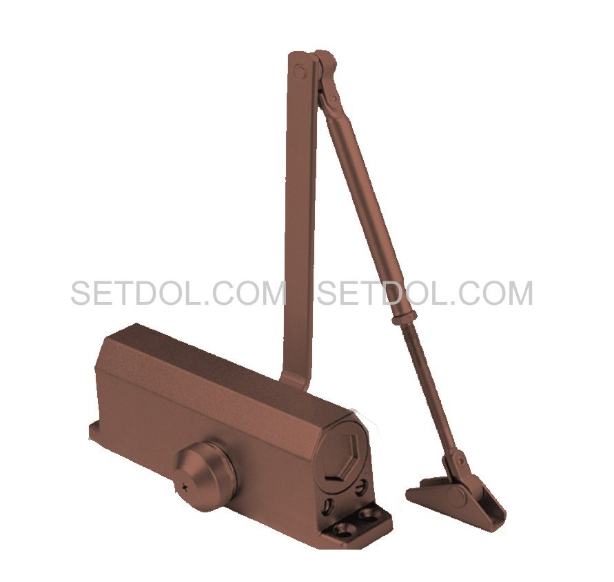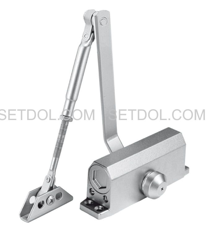 Дверной доводчик DÖRF L-8223-B белый с фиксирующей рычажной тягой верхней установки купить в Москве для дверей массой до 80 кг с шириной до 950 мм, опт цена. Преимущества немецких дверных доводчиков
